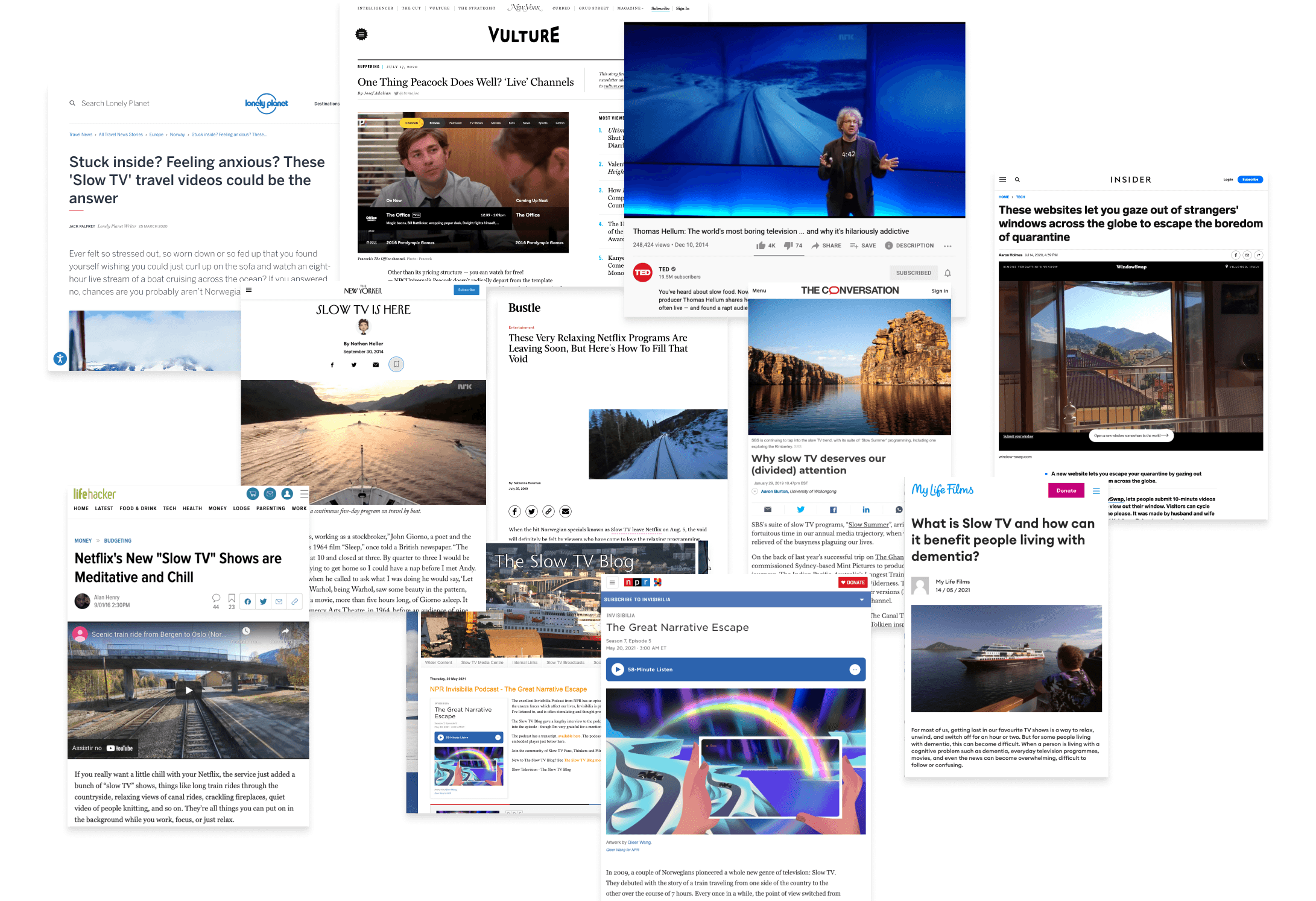 Our research started diving into the topics of Slow TV, reading all articles, watching all talks and listening to all podcasts we could find on the subject. We also read a lot also current trends for online streaming and a growing trend on transcending the algorithms and bringing human curation back.