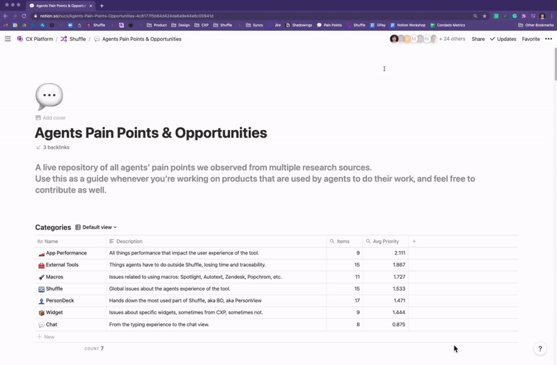 To summarize and structure all knowledge we’ve acquired from multiple research sources, I created a live repository for continuous discovery of agents’ pain points, designed to serve as a guide to whoever would be working on products that are used by agents to consume from and contribute to extend it.