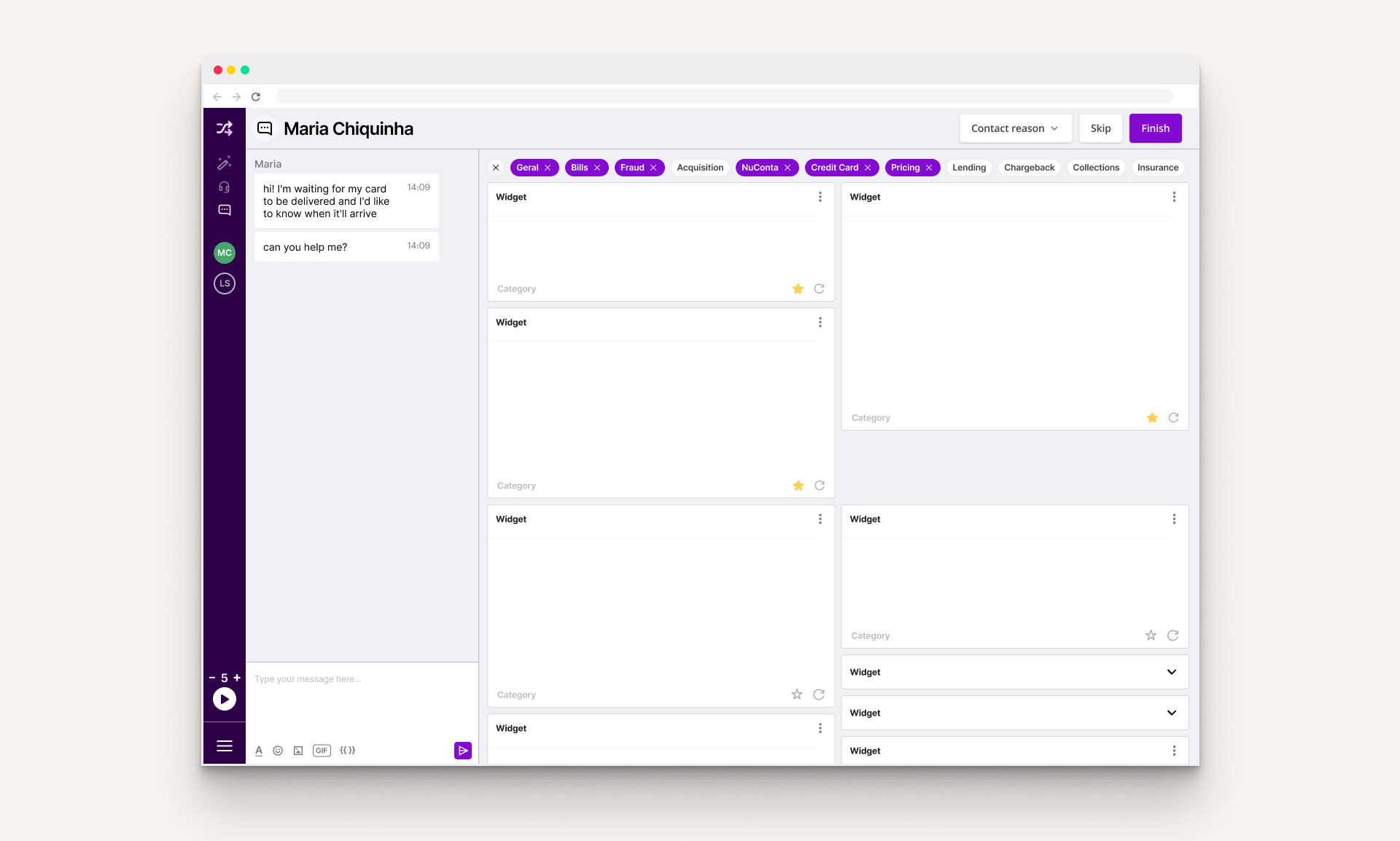 One of the most significant signs that the product had not scaled so well with the company and agents’ needs is the Widgets area. While there might have been half a dozen in the beginning, we were currently approaching more than 50 widgets! Even if agents had very different tasks and customer problems to solve, the way Shuffle organized and sorted these widgets was the exact same for everyone.